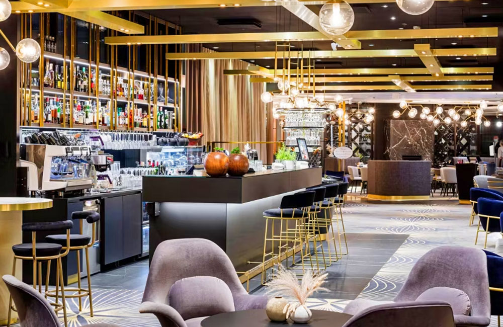 24 h Rezeption, Restaurant, Bar, kleiner Fitnessbereich, Sauna (16–21 Uhr), Schwimmbad, WLAN kostenfrei