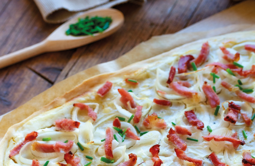 • 1 x Flammkuchen „Elsässer Art“ mit kleinem Dessert und