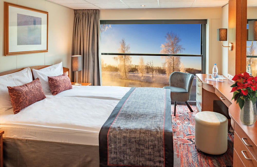 2-Bett-Außenkabine, Oberdeck Deluxe 195 €: 14 m², raumhohes Panoramafenster, elektronisch absenkbar